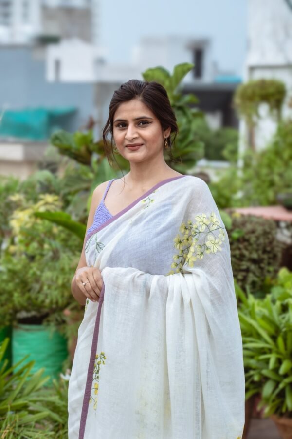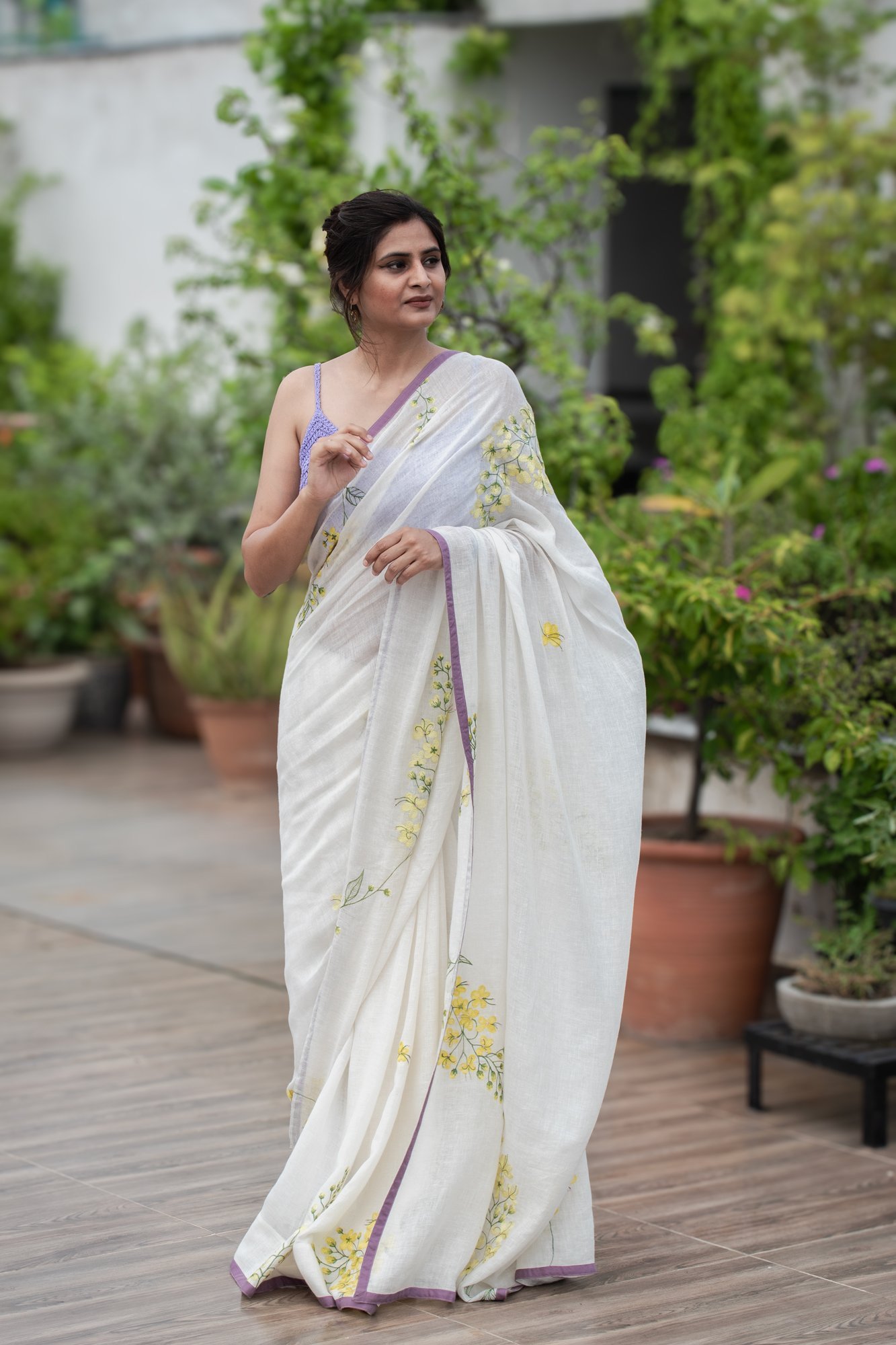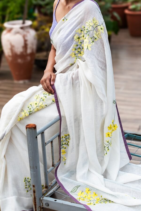 - Colour – White / मोतिया सफ़ेद पे पीले अमलतास